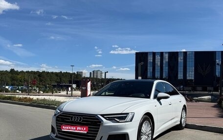 Audi A6 белого цвета, 2022 года выпуска, с пробегом 26 888 километров, объем двигателя 2 литра и мощностью 265 лошадиных сил, бензиновый, коробка передач роботизированная и привод полный. В автомобиле установлены опции, такие как...