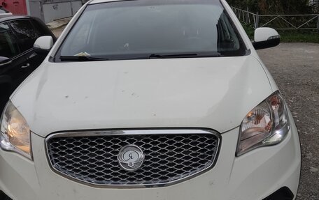 SsangYong Actyon белого цвета, 2014 года. Пробег 149 900 километров, в ПТС указано 3 собственника (я покупала после одного собственника у перекупщика). Объем двигателя - 2 литра и 149 лошадиных сил, тип двигателя - бензиновый. Короб...