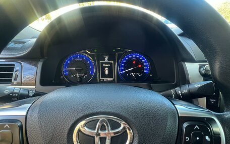 Автомобиль Toyota Camry черного цвета, год выпуска 2013 года. Пробег 220 000 километров. В ПТС 3 владельца. Объем двигателя 3,5 литра, мощность 249 лошадиных сил. Тип двигателя - бензин, КПП - автоматическая, привод - передний. Опци...